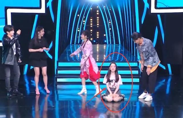 蒋梦婕尴尬的慢慢蹲下跪到地上,直到表演结束。