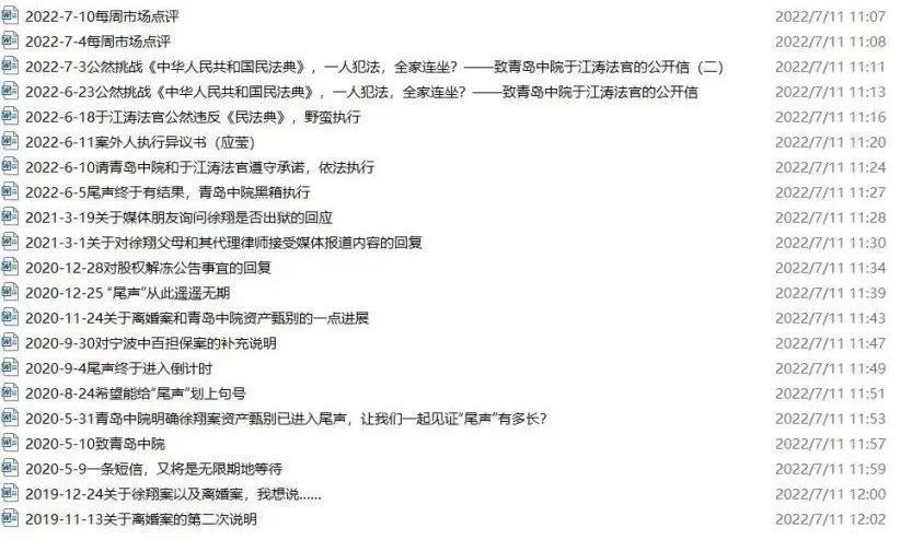 根据她的个人公众号以及微博,一切有迹可循。公众号方面,她自2019年以来一共发布20条内容,其中18条均与离婚以及甄别财产事宜有关。而微博方面,情况也大致相同。