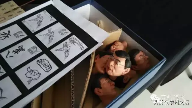 图为刘军设计的麻将图案和央视记者带来的韩乔生人偶。