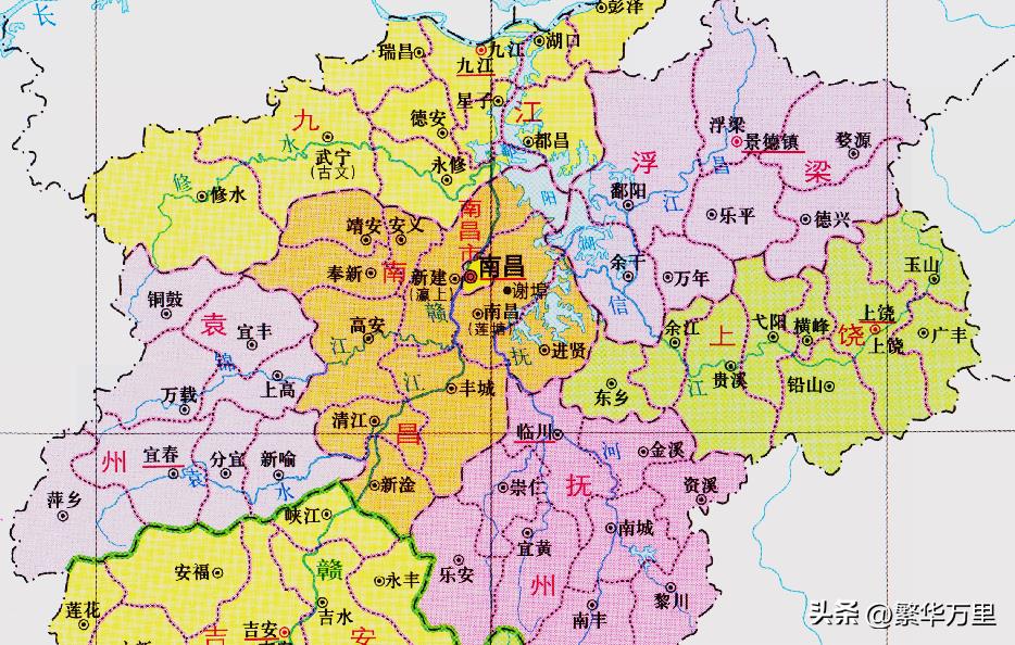 目前,下辖了6个区、3个县,合计9个区县,分别是:东湖区、西湖区、青云谱区、青山湖区、新建区、红谷滩区、南昌县、进贤县、安义县,那么,南昌市9个区县的区划框架,到底是如何形成的呢?