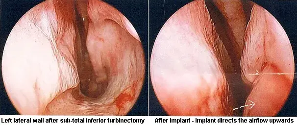 国内外有的专家考虑可以利用自身的软骨或假体,再造一个类似的下鼻甲,将扩大的鼻腔“缩回去”,以改善通气过度的情况。