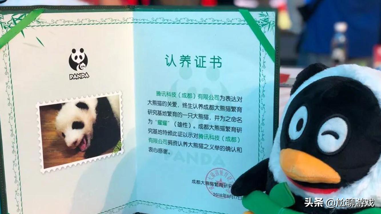 1.一方面,对应2018年8月份腾讯公司于“成都大熊猫繁育研究基地”领养的一只名为“耀耀”的熊猫。