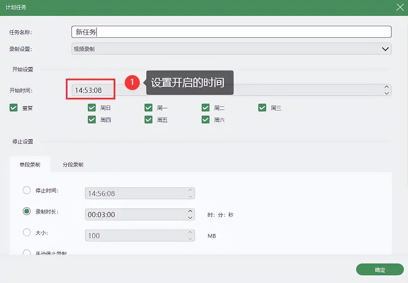 步骤3:点击下方计划任务按钮,制定一个新的视频录制任务,设置好录制的日期和时间,软件就会自动开启录屏。