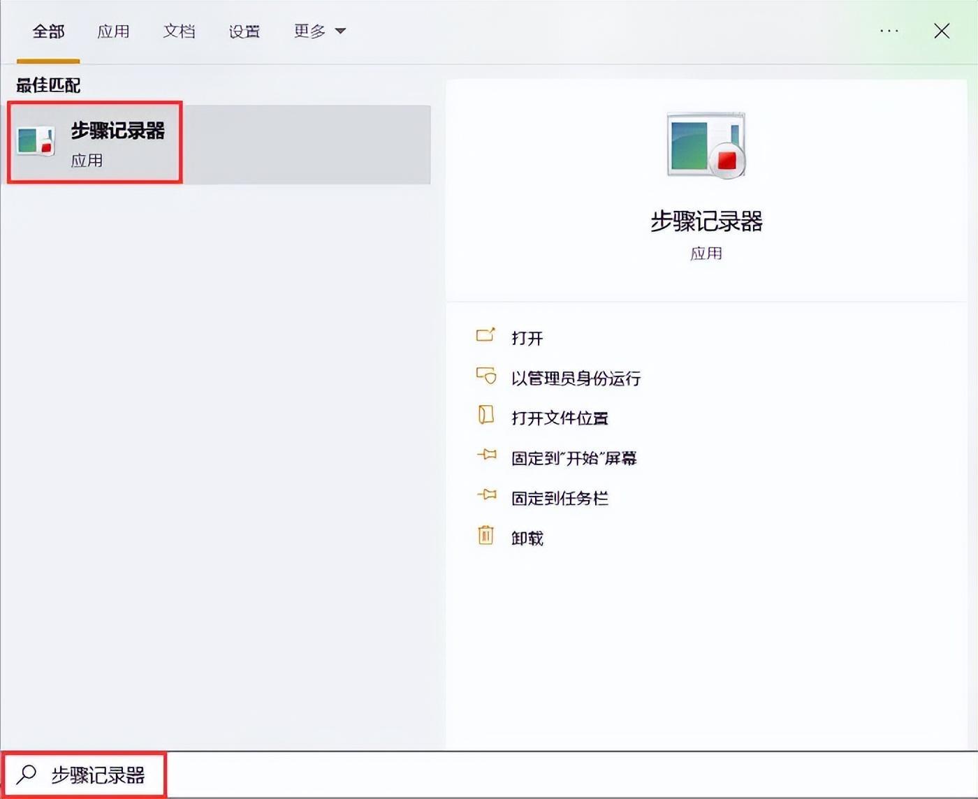 步骤1:在电脑桌面左下角的搜索框中输入“步骤记录器”,然后点击并打开。