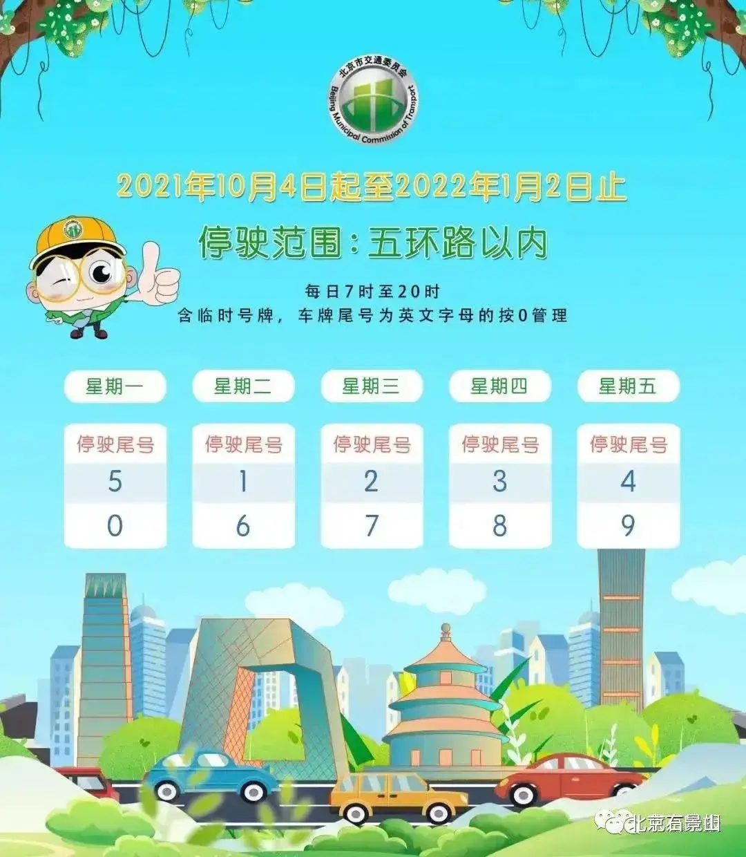 周一至周五,限行尾号分别为5和0、1和6、2和7、3和8、4和9,尾号为字母的,按0号管理。