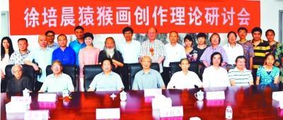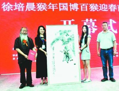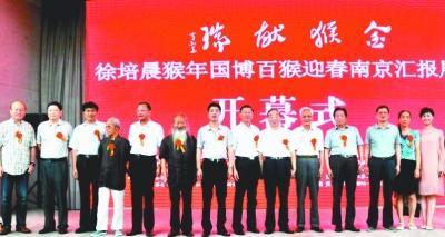 7月14日上午,由中国美术家协会、中国画学会、江苏省委宣传部、江苏省文联、南京师范大学、江苏省文史研究馆、江苏省文化厅主办的,江苏省美术家协会、江苏省中国画学会、江苏省花鸟画研究会承办的“金猴献瑞·徐培晨猴年国博百猴迎春南京汇报展”在江苏省现代美术馆开幕,展出了中国著名画猴大家徐培晨在国博、美国纽约、日本东京办展中的代表作80余件。原江苏省委书记陈焕友宣布汇报展开幕。 江苏省文联主席、党组书记、著名书法家章剑华亲笔题写“金猴献瑞”。