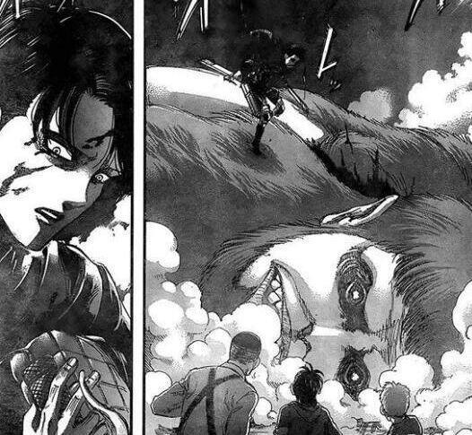 另一边艾伦随便被战锤巨人用大招钉在半空中,但是艾伦本体明没有受伤,他尝试直接把战锤巨人的本体水晶咬碎,结果自己的下巴全部坏了。这时艾伦再次展现他的惊人力量,他摆脱旧的巨人身体,再次变身成为巨人。而旧的躯体没有消失,这应该是进击的巨人独特能力吧。