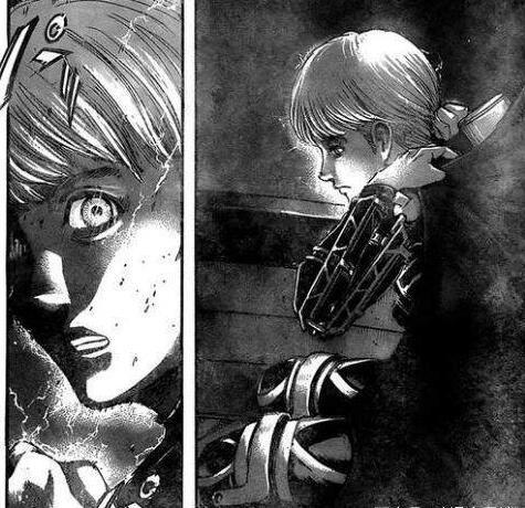 在上一话可以知道,马莱的船只军队正在赶来战场,这是他们的胜利希望。可惜这次调查兵有备而来,迟迟未出场的阿尔敏去哪?答案就是他在港口等待船只的到来,我们看到艾尔敏样貌变得更加惊艳,这完全就是个女生的脸,看上去又有一丝绅士的气质,果然是美男子啊。