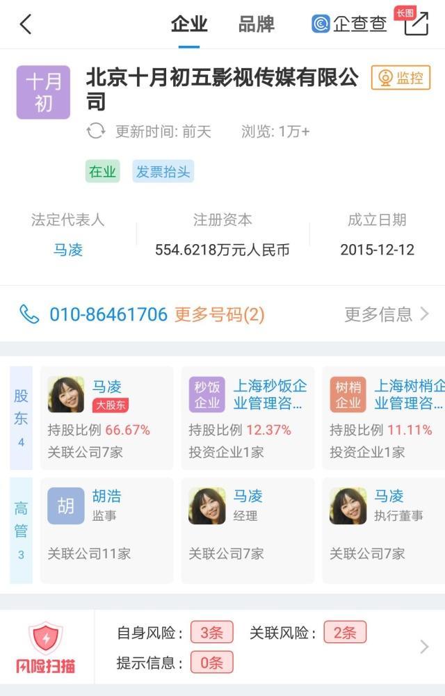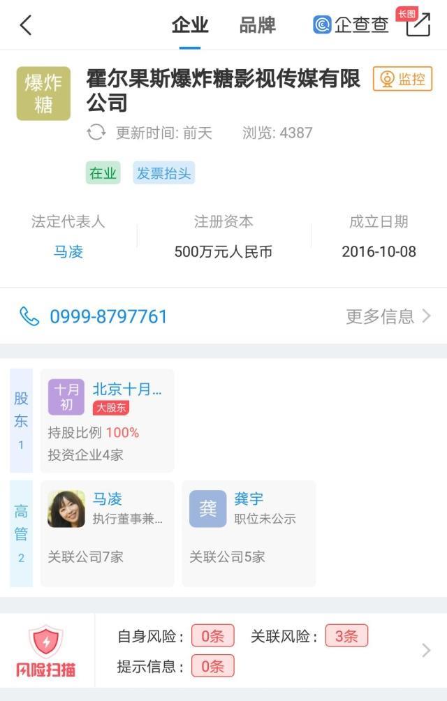 据企查查显示:《一个出身寒门的状元之死》的运营公众号主体公司为霍尔果斯爆炸糖影视传媒有限公司,法人兼执行董事为马凌(即咪蒙)。此公司由北京十月初五影视传媒有限公司100%控股,咪蒙持股66.67%为大股东。