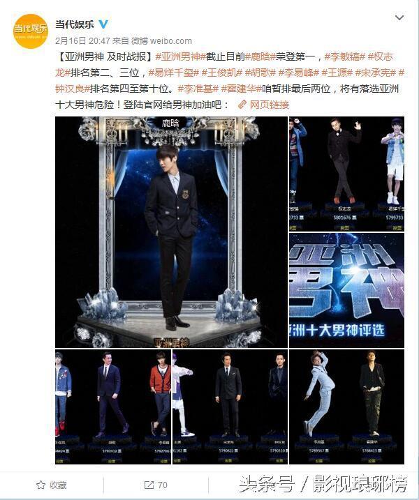 好开心啊~中国的小太阳们~话说你们可是赶超了鹿晗和李易峰哥哥呢,要知道,鹿晗今年二月份的时候还是榜首位置哦~不过鹿晗的人气不担心,李易峰现在的票数,很有可能会落选亚洲十大男神的危险!wuli峰峰啊~要加油!