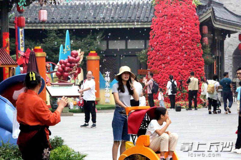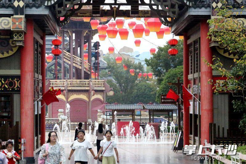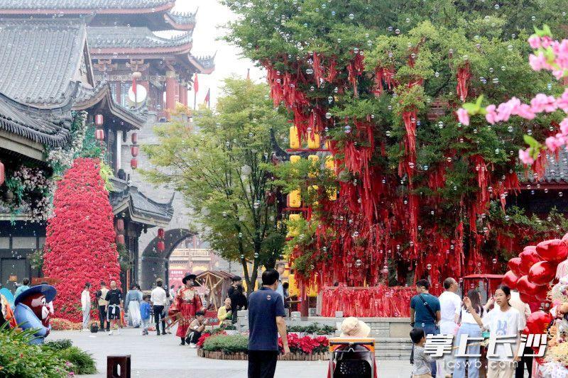长沙晚报掌上长沙9月29日讯(全媒体记者 贺文兵 摄影报道)秋意船上打个卡,稻花香里拍张照,祝福墙前合个影……今天是中秋佳节,也是国庆长假第一天,为营造节日气氛,让游客体验沉浸式游园的快乐,长沙方特游乐园在景区精心布置了50多处打卡点。景区喜庆祥和,引来游人如织,欢欢喜喜过双节。