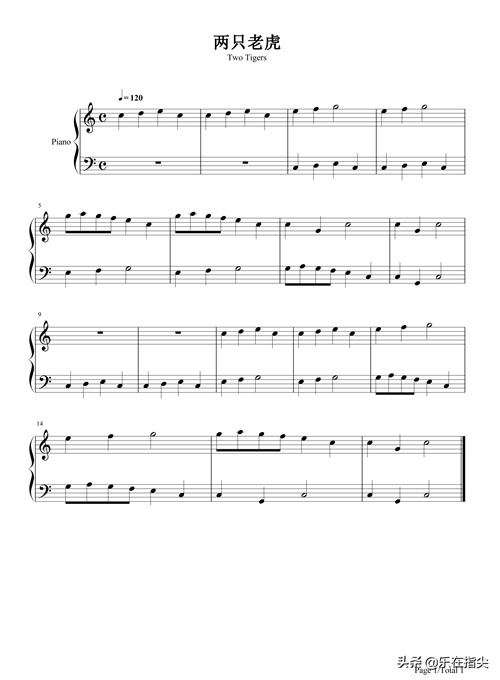 两只老虎经典儿歌。该版本的两只老虎弹奏时两只手分别弹奏旋律,它不同于旋律和伴奏的关系,两只手都要弹清楚,要注意掌握力度,两只手都要弹清楚,声音要结识。