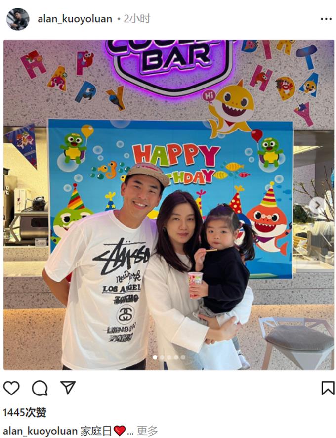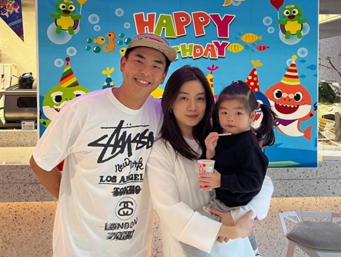 曝光的照片中,柯有伦带着妻女去参加朋友家孩子的生日派对,一家三口同框,很是有爱。