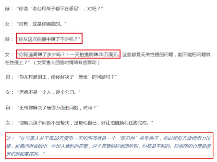 从目前庭审的证词和证据,以及高远翔律师团队和张曦的对话中,能看出张曦的破绽百出。在被高云翔的律师团队问急了之后,张曦索性曝出了“高云翔在澳洲拍戏期间日入百万”的猛料,虽然与此案无关,但从侧面看出张曦眼红了!