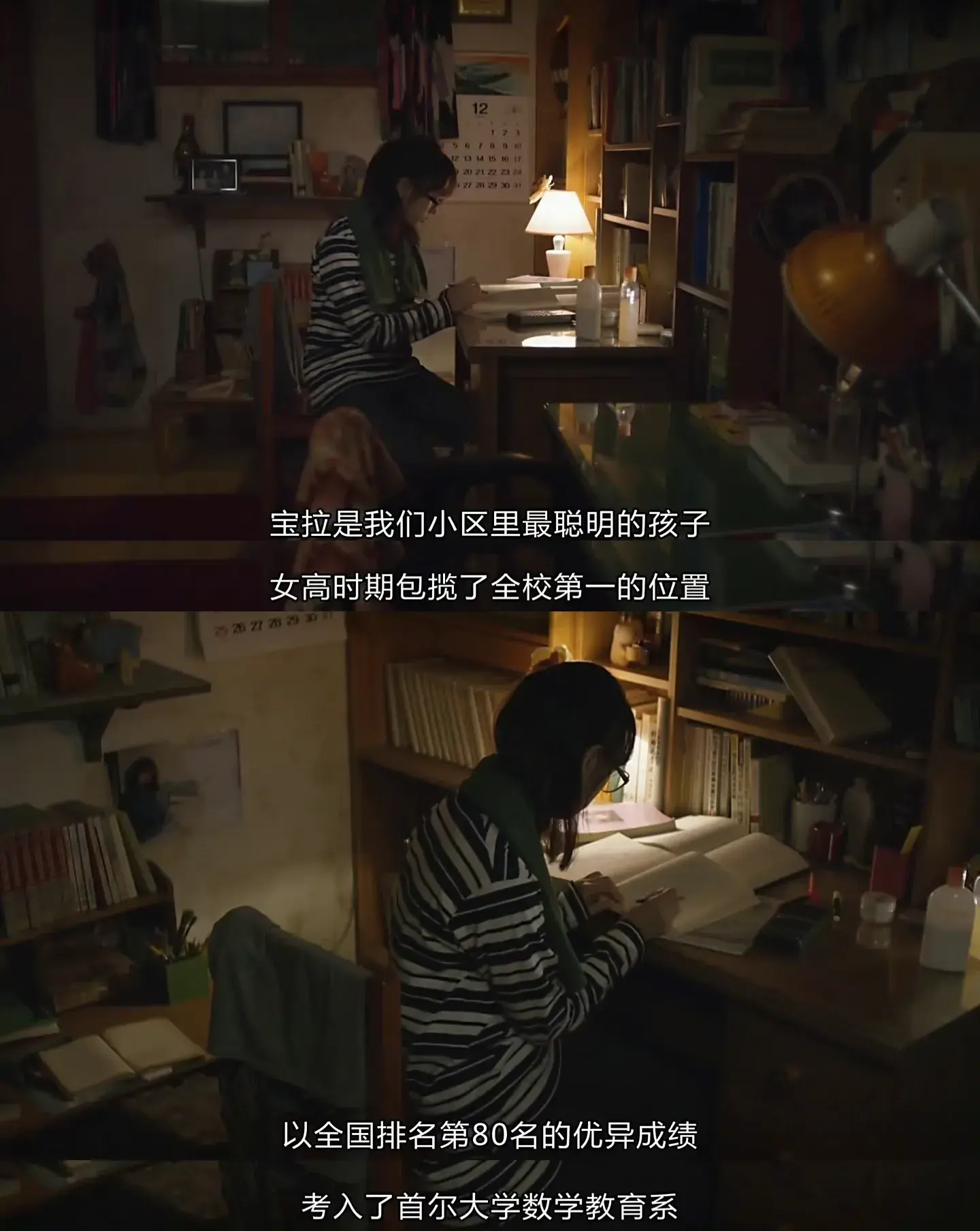 且想想宝拉自己在学习上的拼劲,在妹妹睡着后仍在学习,在图书馆也在学习,在狭小的小房间里吃着泡面学习。