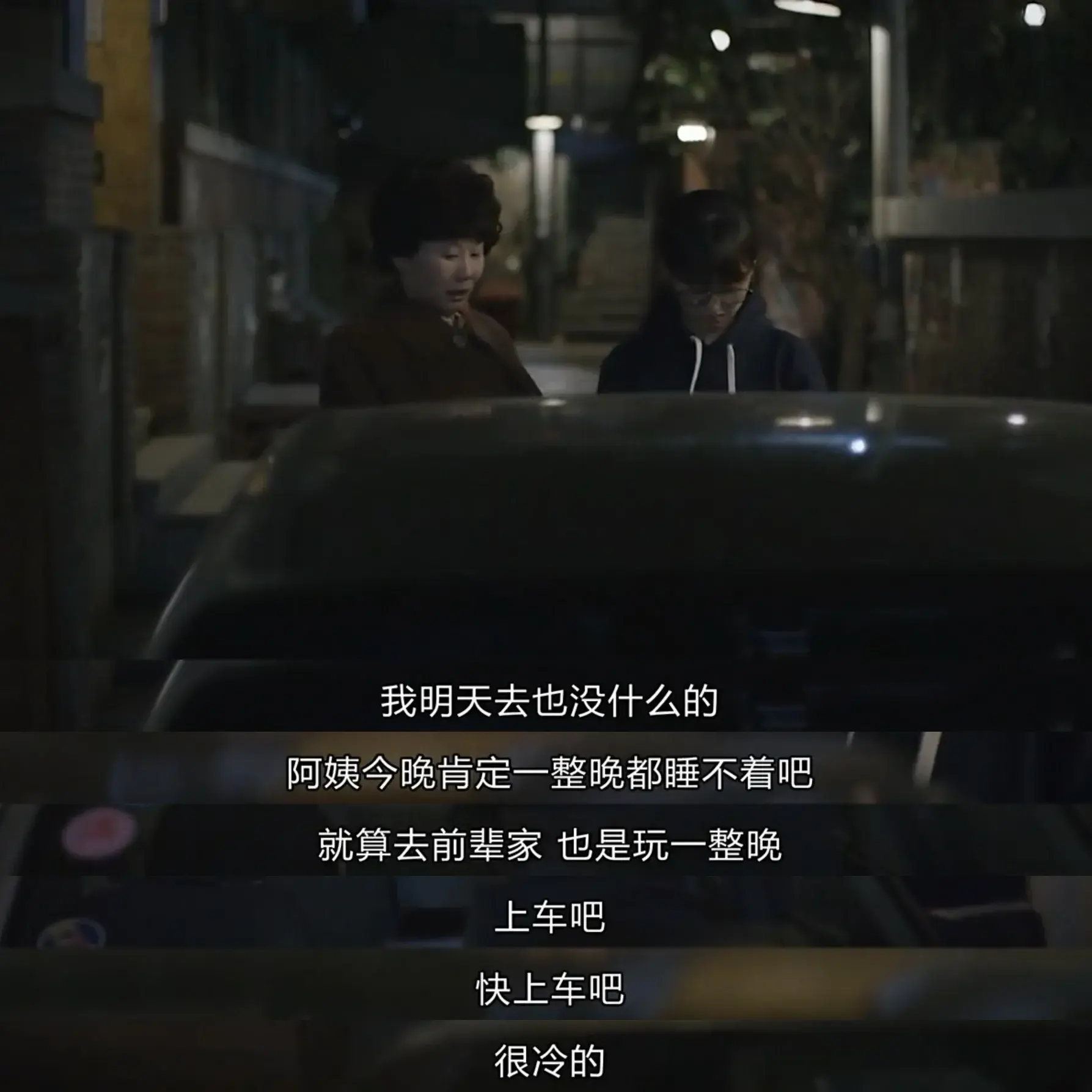 她会在善宇妈妈需要用车的时候提供帮助,在善宇妈妈推脱说,明天去也没什么,她却说,阿姨今天肯定一整晚都睡不着吧,快上车吧,很冷的。