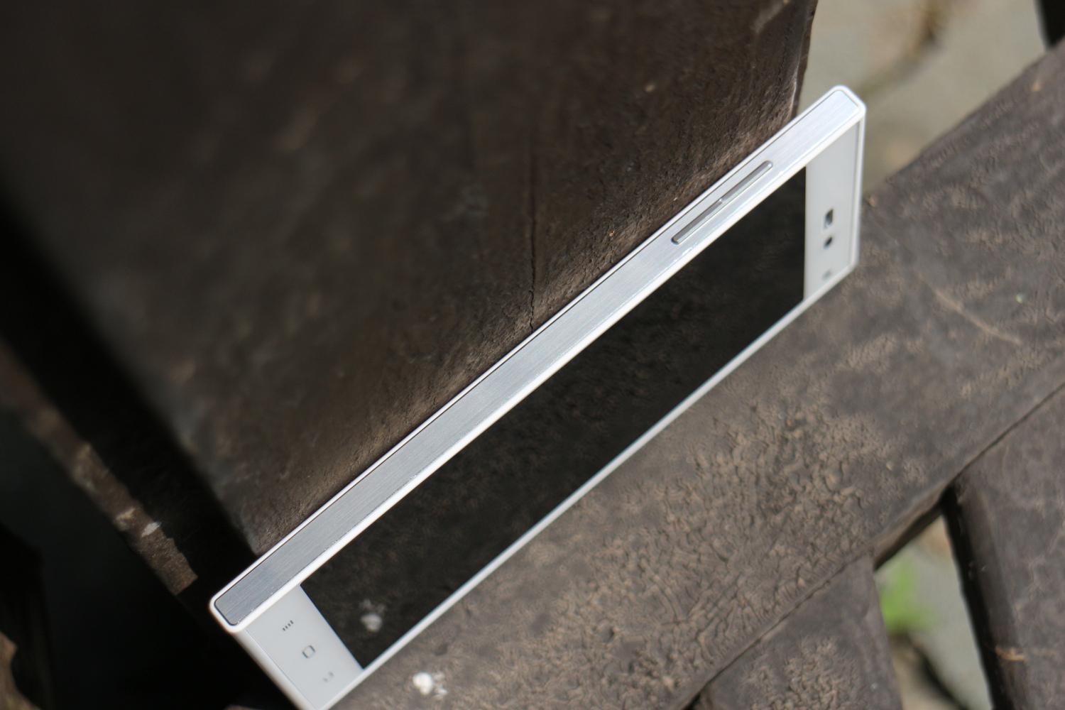 侧面为阳极氧化铝拉丝边框,右侧是电源及卡槽。电源键按键手感不错,反馈和回弹很清晰,双卡槽让机身侧面有些支离破碎。