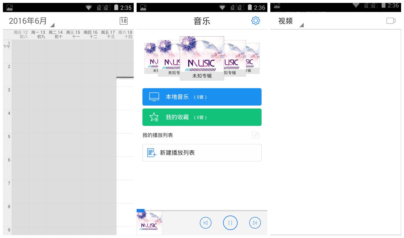 不过也有部分小工具的界面还是相对简陋,系统的完成度还是略逊一筹。比如日历界面与安卓原生的基本相同,音乐和视频也没有引入在线资源。