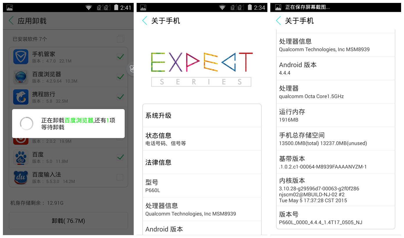 预置应用均可以自行卸载,这点也比较方便。系统版本为安卓4.4.4。