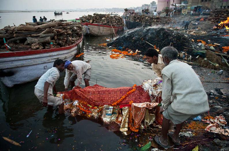 另外,恒河沿岸建有不少火化场,死者的骨灰也多撒在恒河中,这还不算什么,印度不少地方还保留了水葬的习俗,时不时会有一些尸体漂浮在恒河之上。