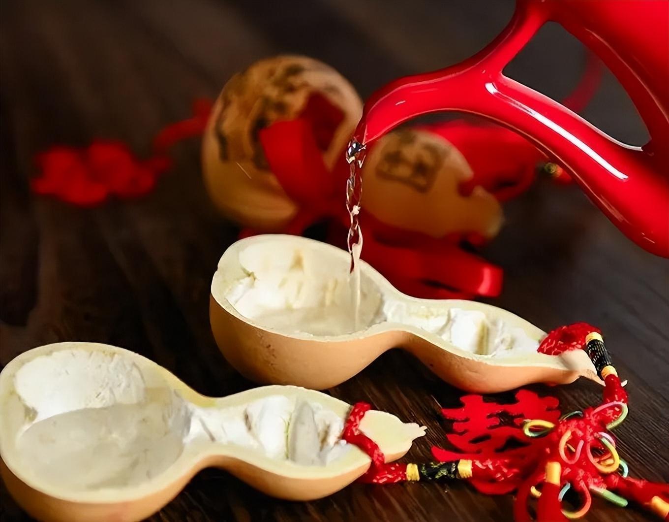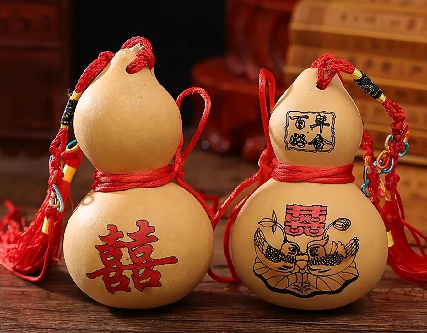 后来葫芦也成为了“敦伦”的符号一直被沿用到婚礼当中,随着社会的发展,葫芦也成为了婚礼中的礼器。在诸多影视剧当中,我们都能看到男女主角在婚礼上会喝用葫芦瓢装的合卺酒。