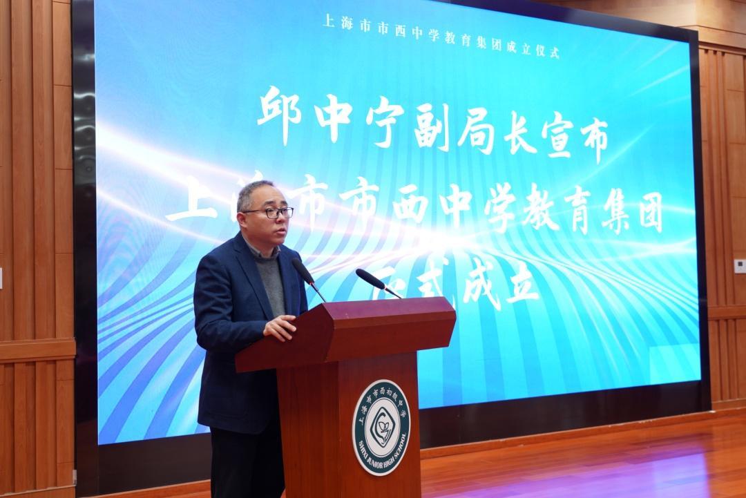 静安区教育局副局长邱中宁在会上宣读了组建市西中学教育集团的通知。他表示,为更好应对已经显现并逐渐加剧的高中学段入学高峰,同时逐步解决义务教育初中学段入学的结构化矛盾,进一步优化和调整义务教育初中学校设点布局,着力提高初中学校办学水平和育人质量,静安区教育局重组市西初级中学教育集团,成立以市西中学为龙头的市西中学教育集团,实施集团化办学,努力探索和构建静安基础教育初高中一体化办学和创新人才培养的最佳实践路径。