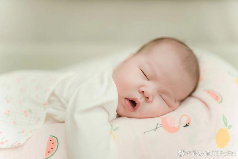 最后一张则是弟弟安安的特写照,因为才刚满月没多久,所以安安大多数都是熟睡的状态。小可爱趴在枕头上睡得那叫一个香甜,小肉脸和姐姐一样又白又嫩,姐弟俩的五官也十分相似。