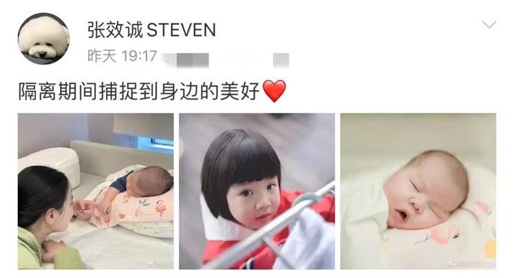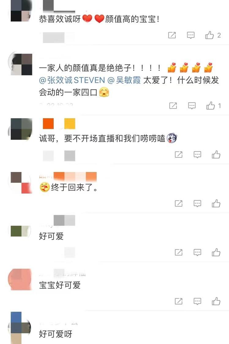 看到张效诚的分享后,网友纷纷留言:“一家人的颜值真是绝绝子”、“颜值高的宝宝”