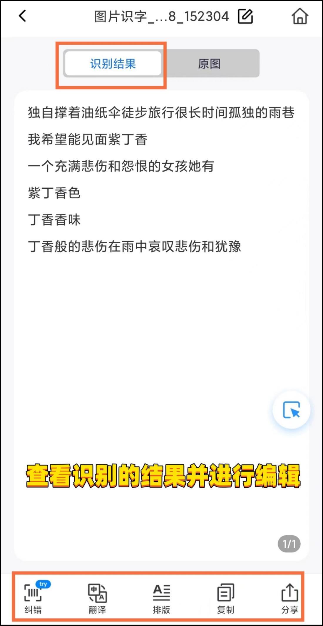 点击其中的“图片识字”按钮,选择需要识别文字的图片,并进行识别。等待识别完成,即可看到图片中的文字内容。还可以更改识别的内容,或者对识别内容进行翻译。
