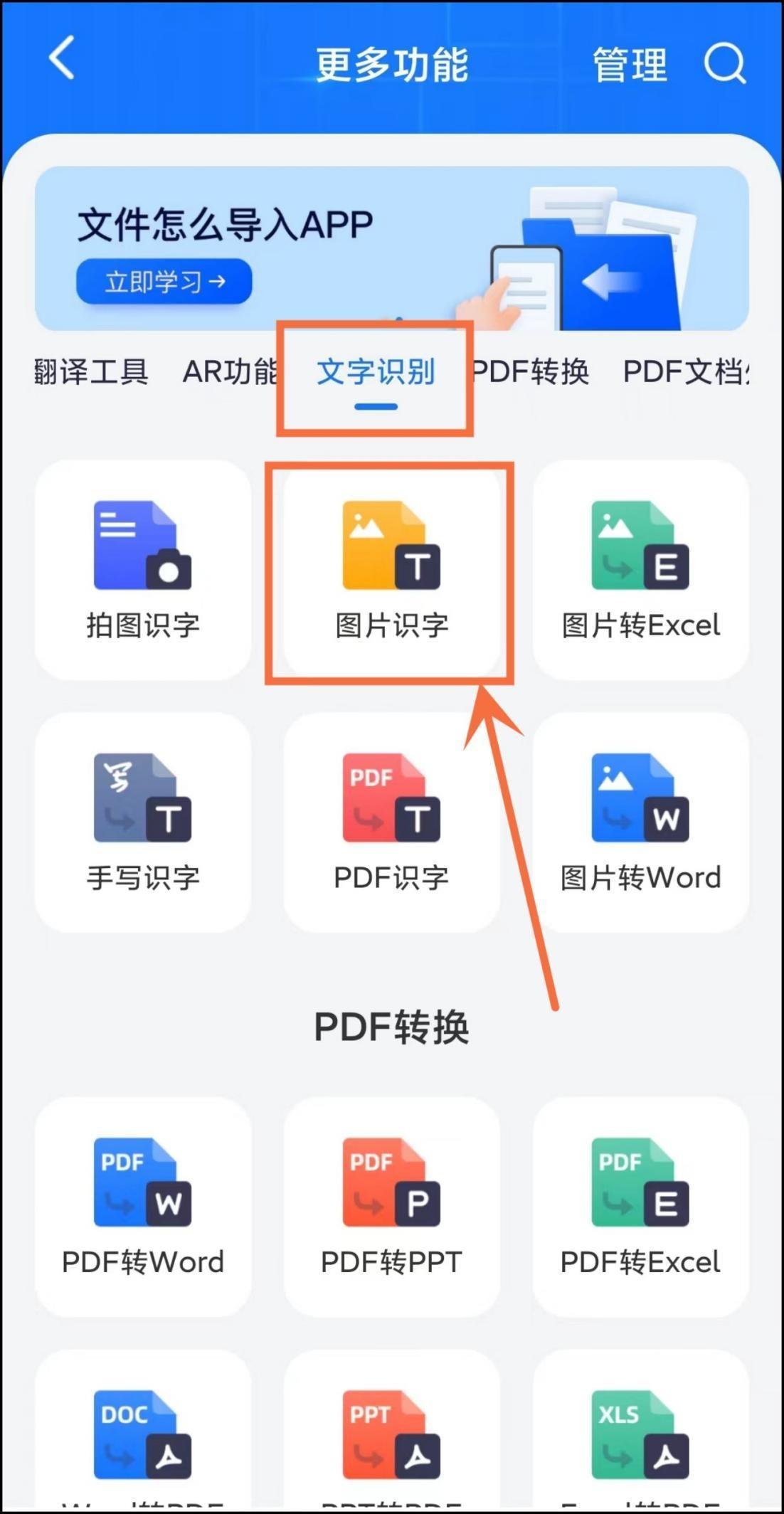 这个APP除了翻译功能之外,还包含了很多办公功能,例如图片识字、PDF转换等,满足我们日常工作的需求。