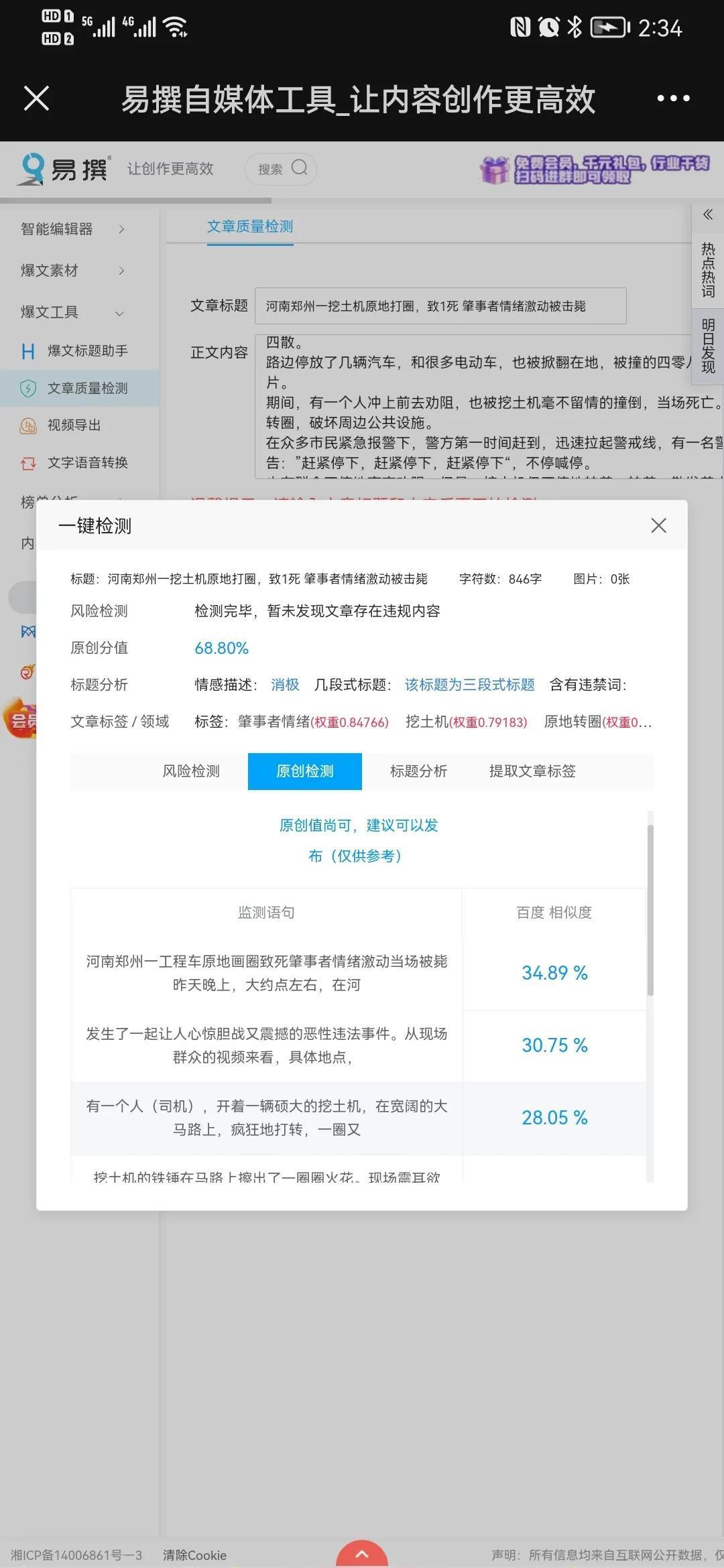 如何检测原创度 提升原创度 来 给大家推荐一免费小程序 干货满满