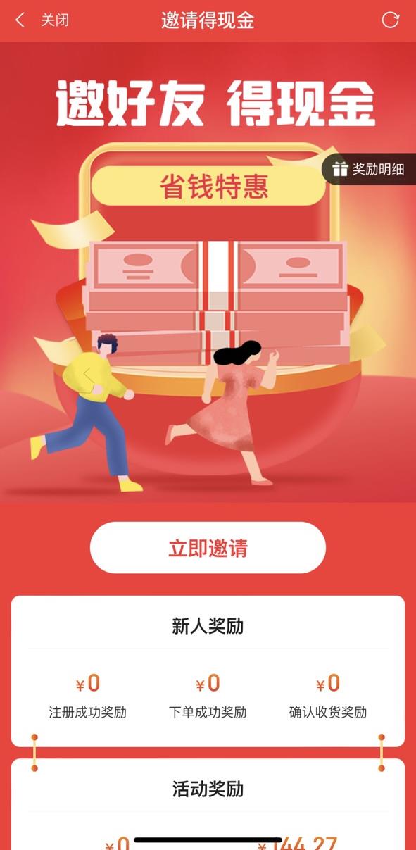 省钱特惠会员邀请好友注册会员可得现金奖励: