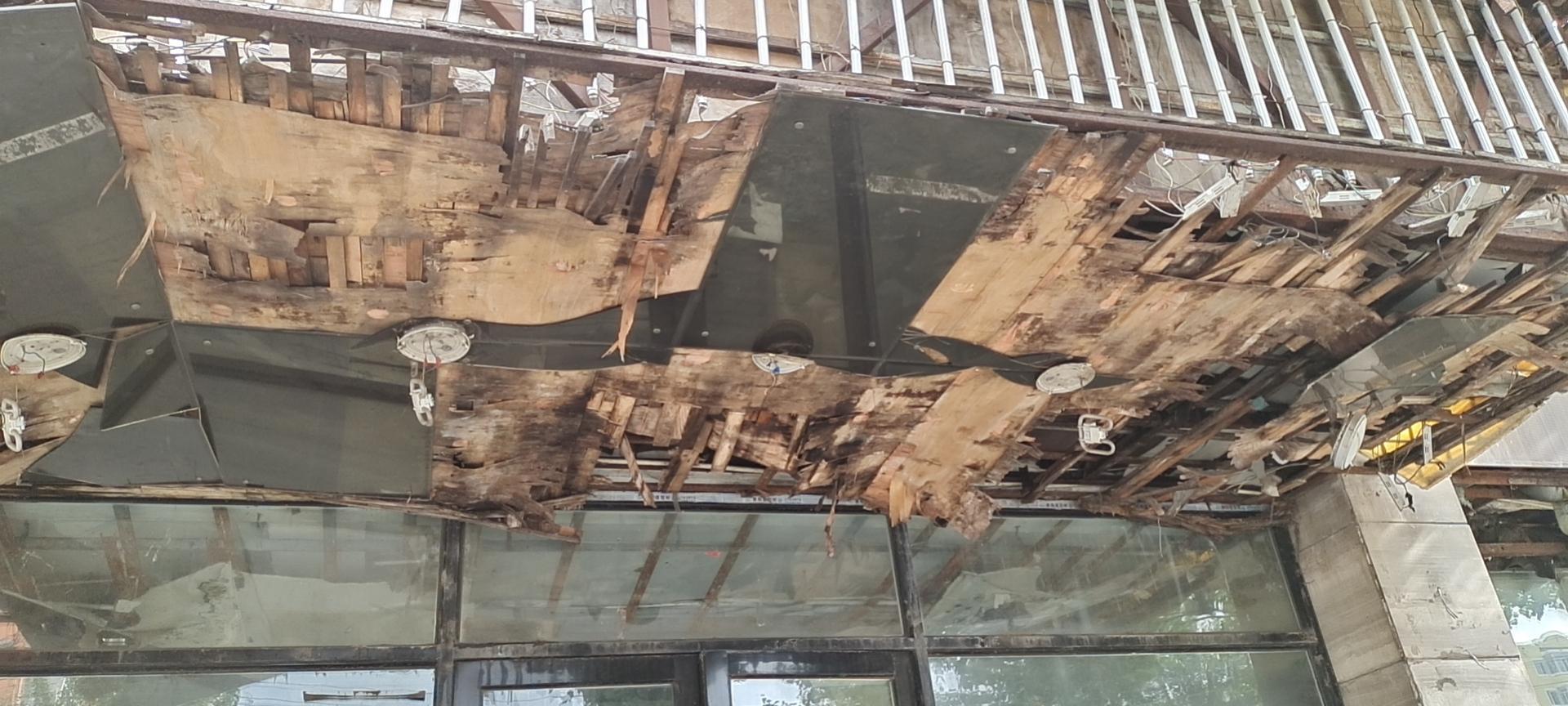 太危险了!雨搭都破成这样,千万别砸着人啊