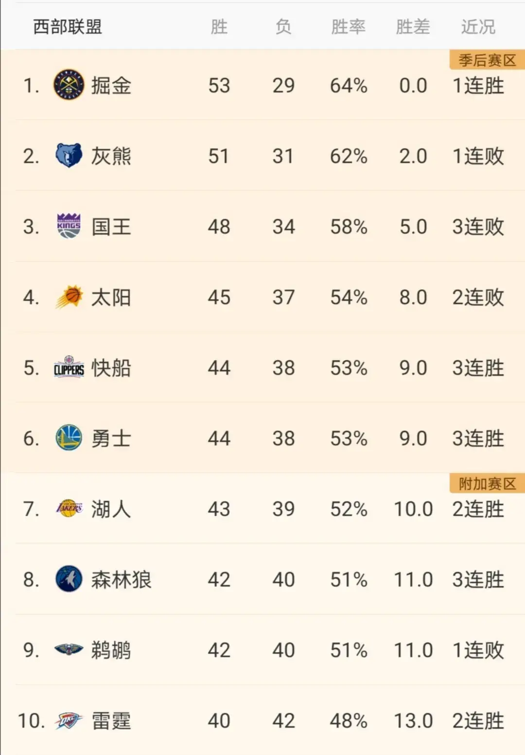 NBA2022-2023赛季常规赛即将结束,东西部联盟前6已然出炉,接下来将是排名7-10的队伍进行附加赛。