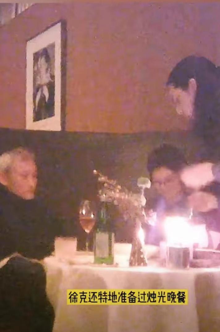 当天,徐克将约会的地点选在一家精致的西餐厅,香槟令人心醉、昏暗的灯光下尽显暧昧气息。两人相聊甚欢,讲到开心处,徐克眉飞色舞,一旁的小女友更是被逗乐到前仰后合。