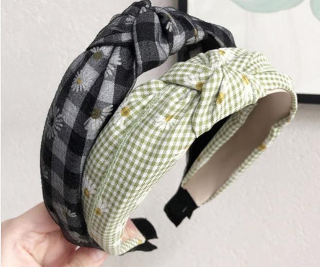 除了颜色协调,也可以从风格统一的角度选择发箍。比如这种森系女孩们最爱的格纹发箍,和带有格纹元素的服装搭配就会呈现出特别的感觉。如果你有一条小碎花长裙,也可以试试印花款发箍,看起来优雅又温柔。