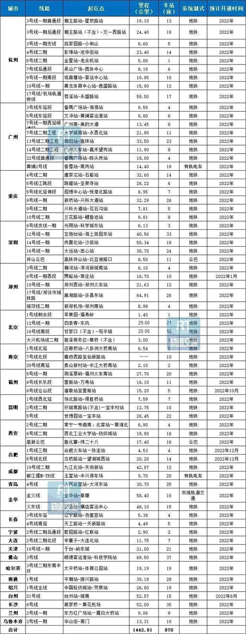 2022年国内共有26个城市预计开通新的城轨线路,主要是那些GDP强市,比如北京、天津、广州、武汉、成都、合肥、南京、郑州、西安等。