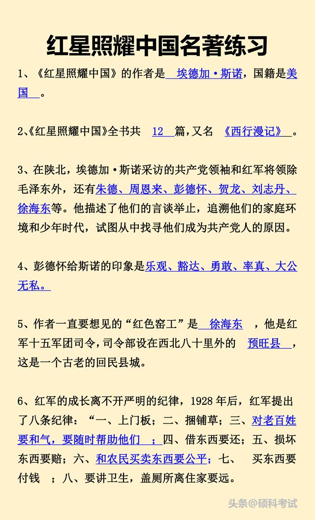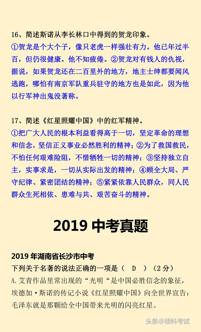 名著导读《红星照耀中国》必考知识点最全整理(附今年中考真题)