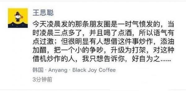 然后思聪又发了朋友圈,说之前的朋友圈是气话,自己冲动了。