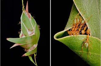 缝叶蚁把它们的幼虫既当成纺线的锭子,又当作织布的梭子来使用,这一奇特的现象是低等无脊椎动物使用工具最引人惊奇之处。而缝叶蚁正是依靠这种绝技建造起大家庭的“空中楼阁”。