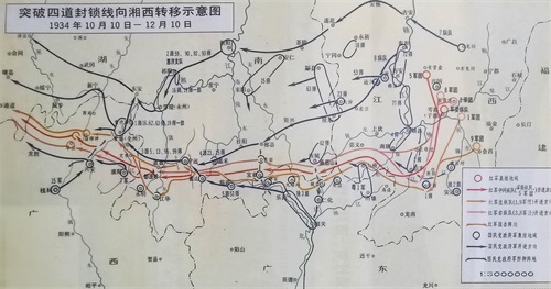 中央红军突破四道封锁线向湘西转移示意图