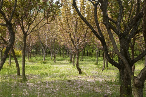 山坡上有很大很大一片玫瑰园,四月底玫瑰含苞待放。等到漫山遍野的玫瑰开时,那将是一幅多么美丽的画面啊。