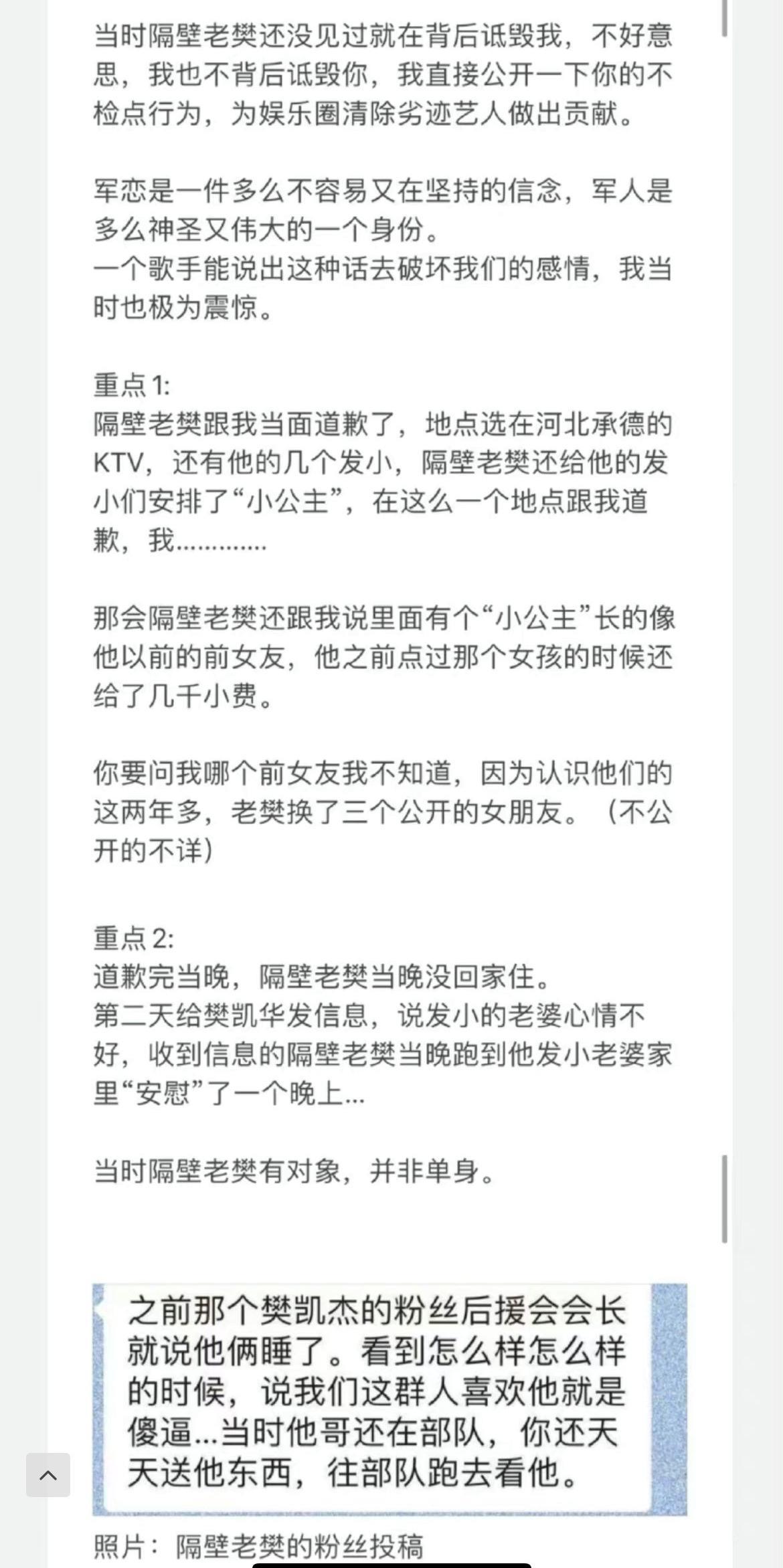 不仅如此还爆料隔壁老樊疑似睡了发小的老婆,还给自己有对象有家室的发小在KTV点“小公主”。还睡了自己的后援会会长