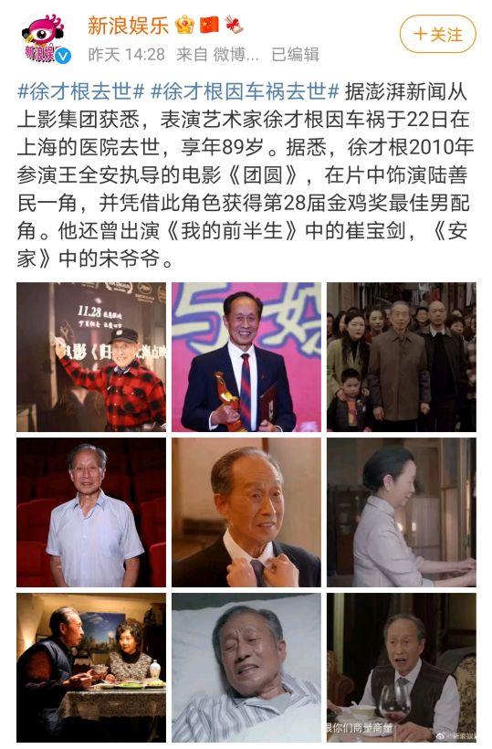 徐才根因车祸去世的消息让人惋惜,他的意外离世让我们损失了一位老戏骨,愿老艺术家能够一路走好。