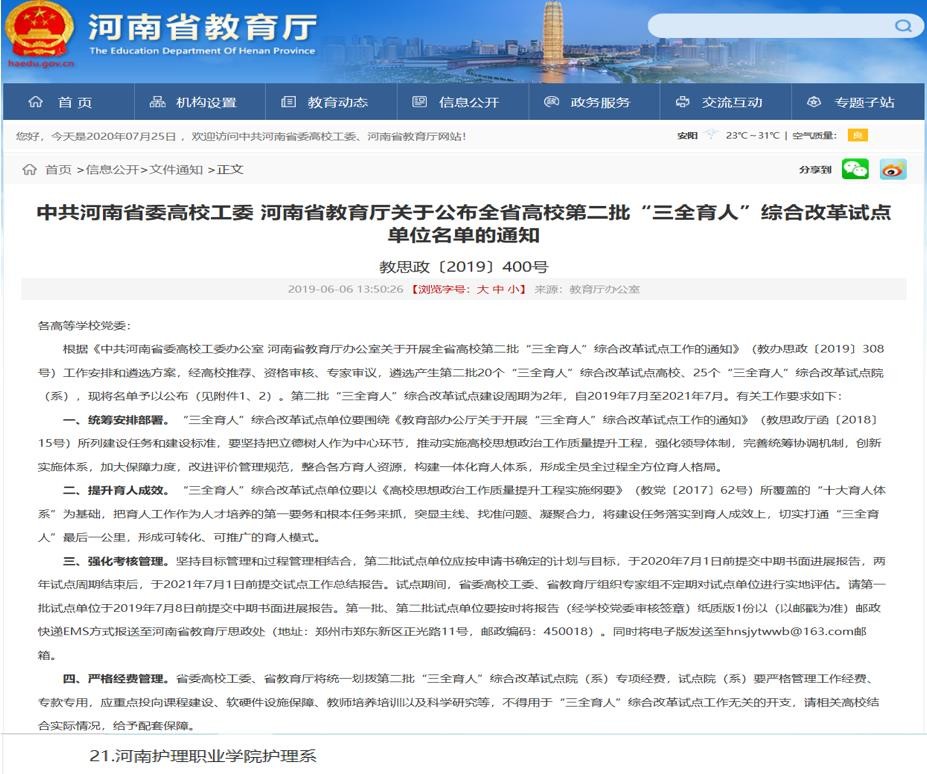 图四:护理系荣获2025年“河南省高校三全育人综合改革试点”