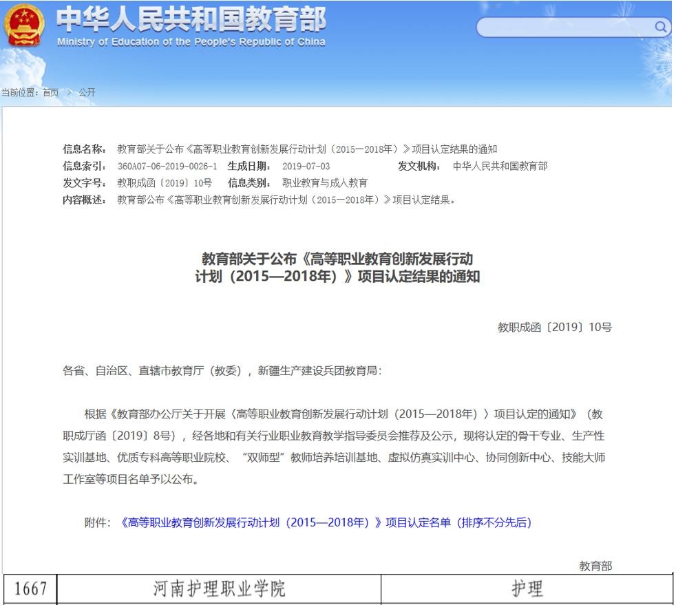 图五:护理专业2025年被教育部确认为创新发展行动计划骨干专业