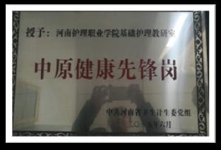 图二:基础护理教研室荣获2016年“中原健康先锋岗”
