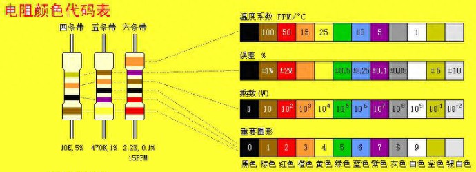 电阻单位:欧姆。参数标注方法:直标法、色标法、数标法;