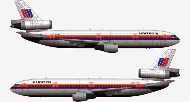 本厂长绘制的美联航UA232航班N1819U号DC-10-10客机二视图