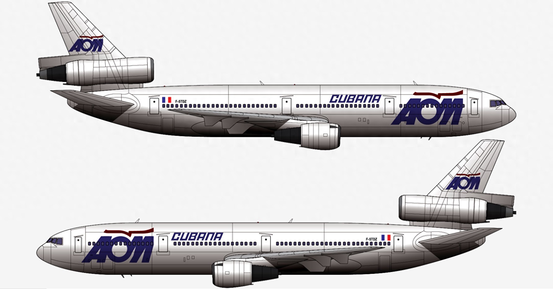 本厂长绘制的古巴航空CU1216航班F-STDZ号DC-10-30客机二视图